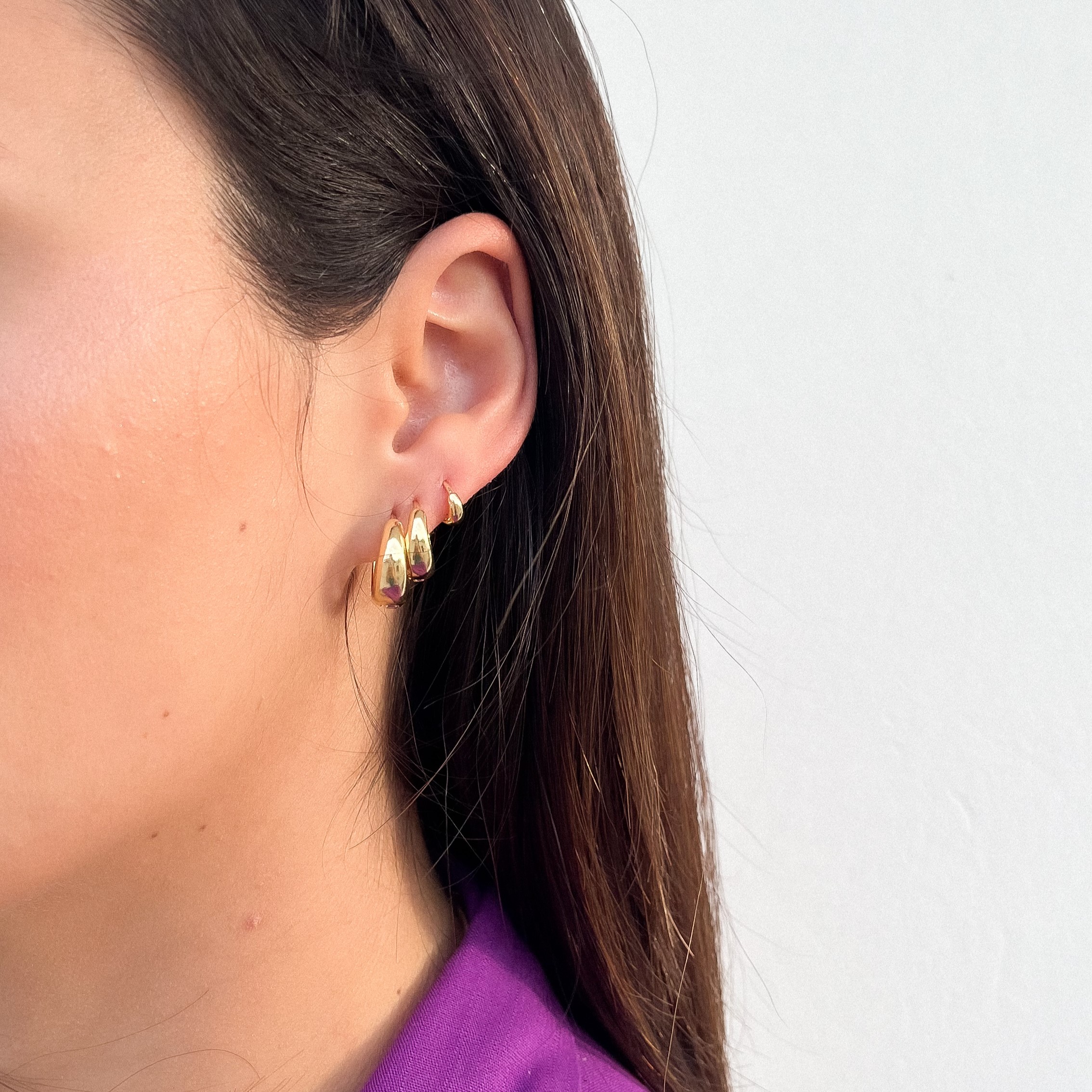 Kit Trio Brinco Argola Lisa Click Gordinha, com tamanhos de 1 cm, 1,3 cm e 1,5 cm, banhado a Ouro 18K.